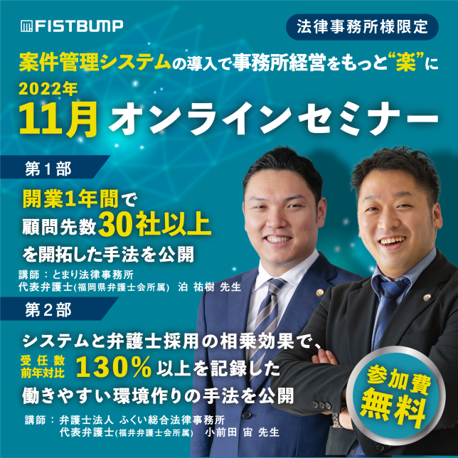 法律事務所限定Webセミナー【ダブルゲスト講演】案件管理システムの導入で事務所経営をもっと楽に!
